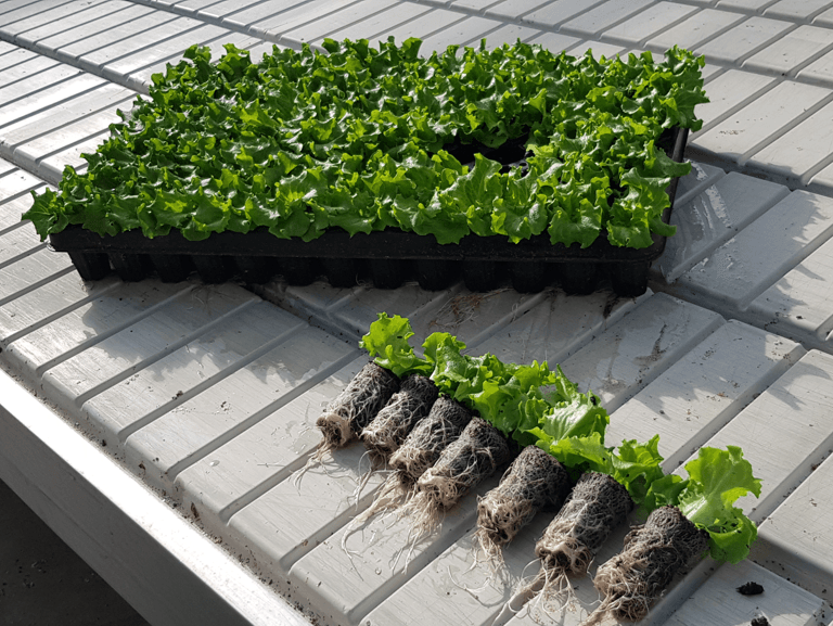 After propagation, the young plants are transplanted directly into specially engineered injection-molded Floating Rafts made from food-safe plastics.